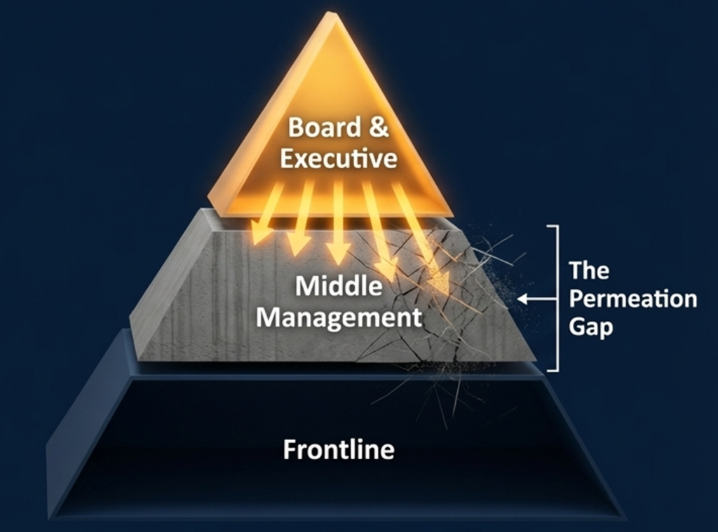 An aggregate score might suggest a healthy culture, but it rarely reveals where the desired culture is diluting as it moves level-by-level through the hierarchy. For a board, this represents a significant Cultural Risk. If the executive intent is not reaching the frontline, the organisation faces increased risks in compliance, safety, and performance, all of which now fall under the board’s expanded oversight duties.